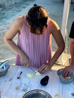 After the cooking is done, it's time to relax and enjoy the fruits of your labour. Join your new friends on our scenic terrace, where you will feast on the delicious dishes you've prepared, sip refreshing retsina wine, and soak in the breathtaking views of Skopelos port.
